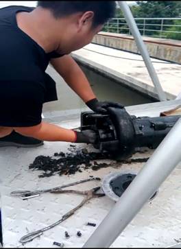 在檢修過程中,機修人員不怕臟、不嫌臭,直接下手將堵塞物、葉輪纏繞物一一清理出來,完美詮釋了污水人“一絲不茍、精益求精”的工作作風和優(yōu)良傳統(tǒng)。正是有這么一群可愛的人,在平凡的崗位默默奉獻,才保證了污水系統(tǒng)各個環(huán)節(jié)設備設施的正常運行,進而保證了出水水質(zhì)的穩(wěn)定達標(張曉偉)。