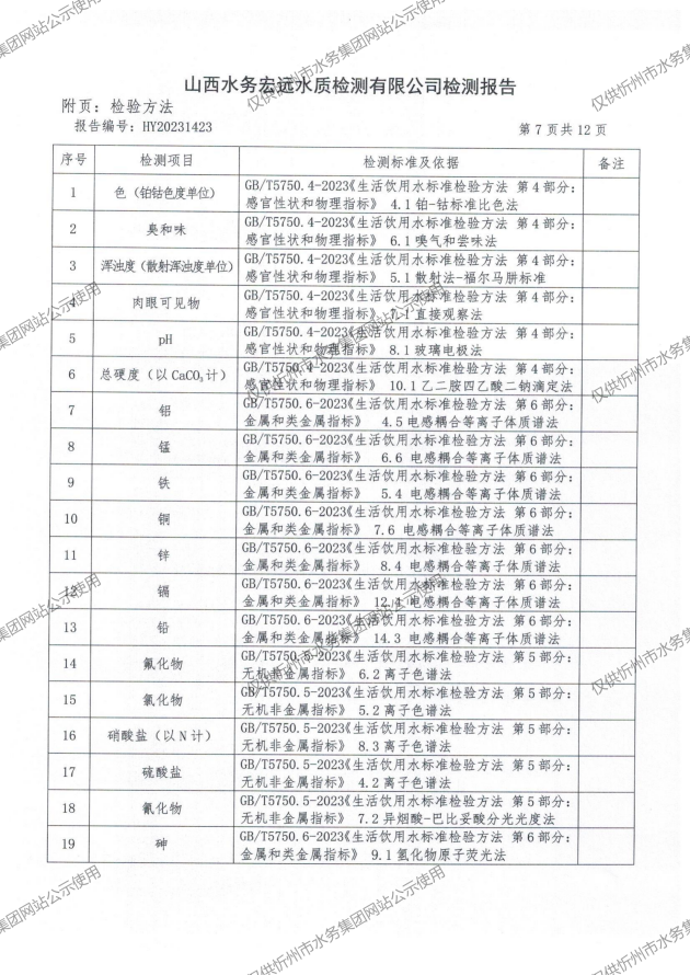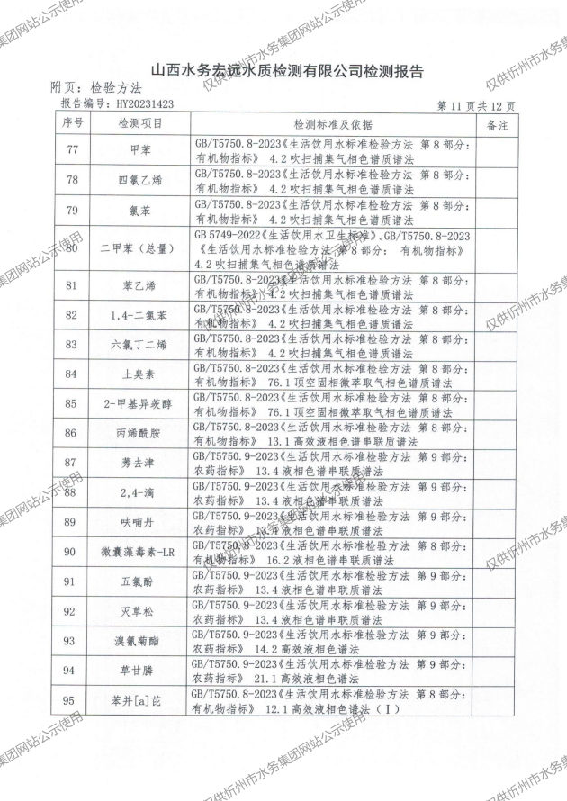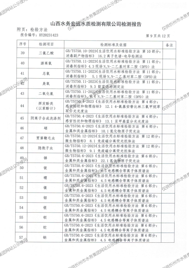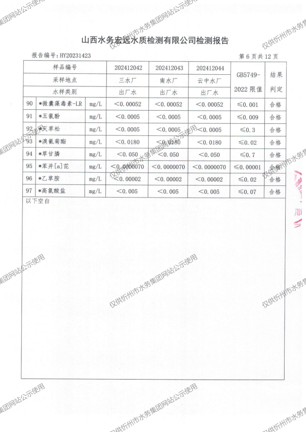 2024年忻州城區(qū)公共供水南水廠、三水廠、云中水廠出廠水97項(xiàng)水質(zhì)全分析