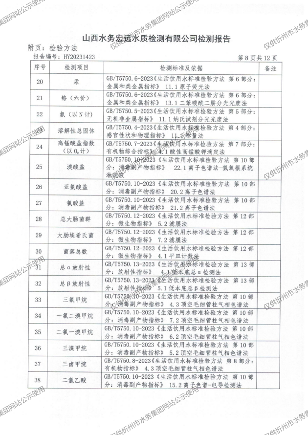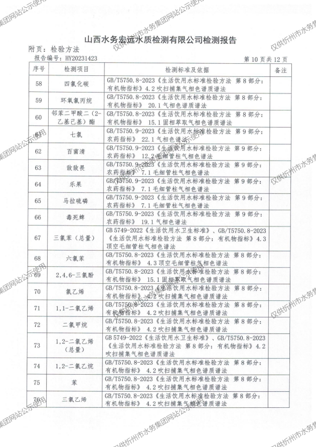 水質(zhì)公告