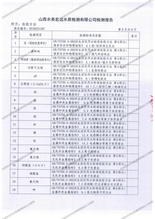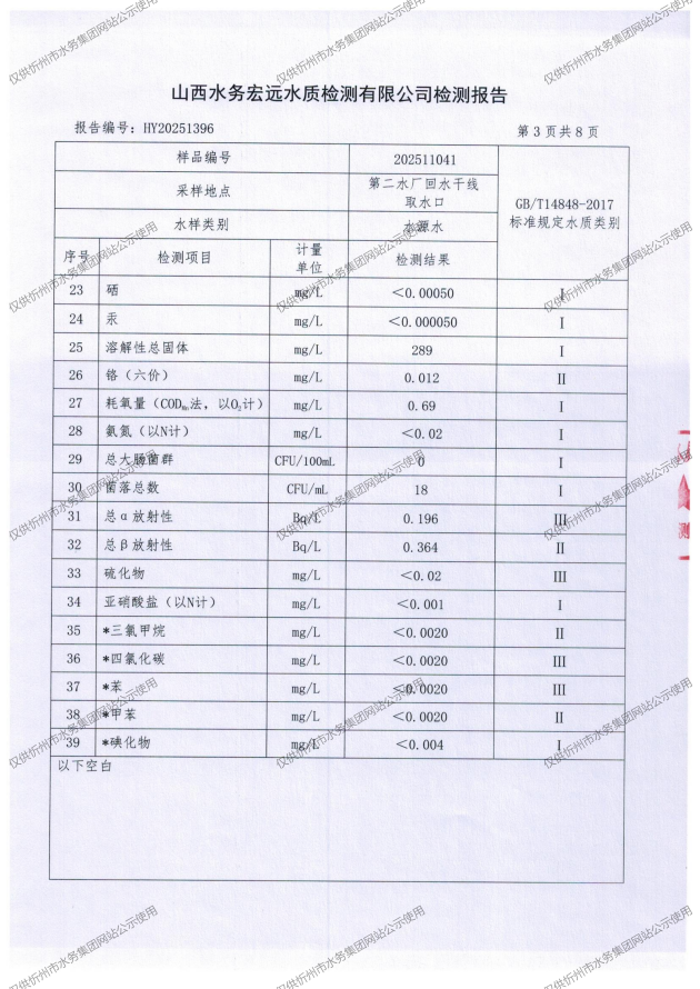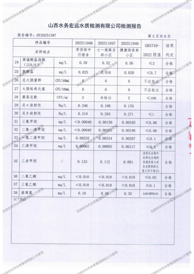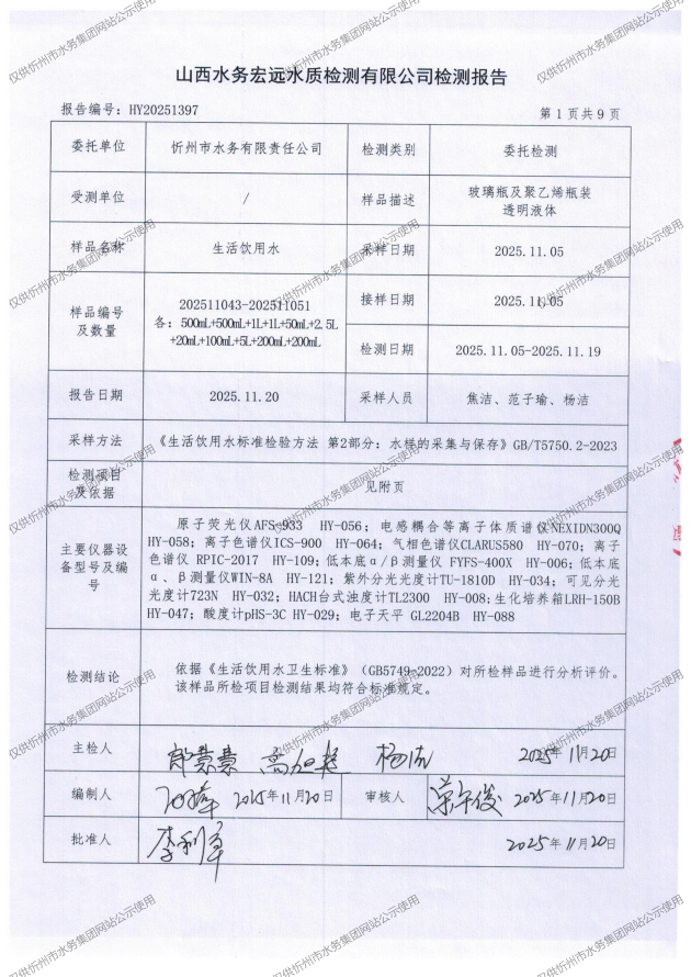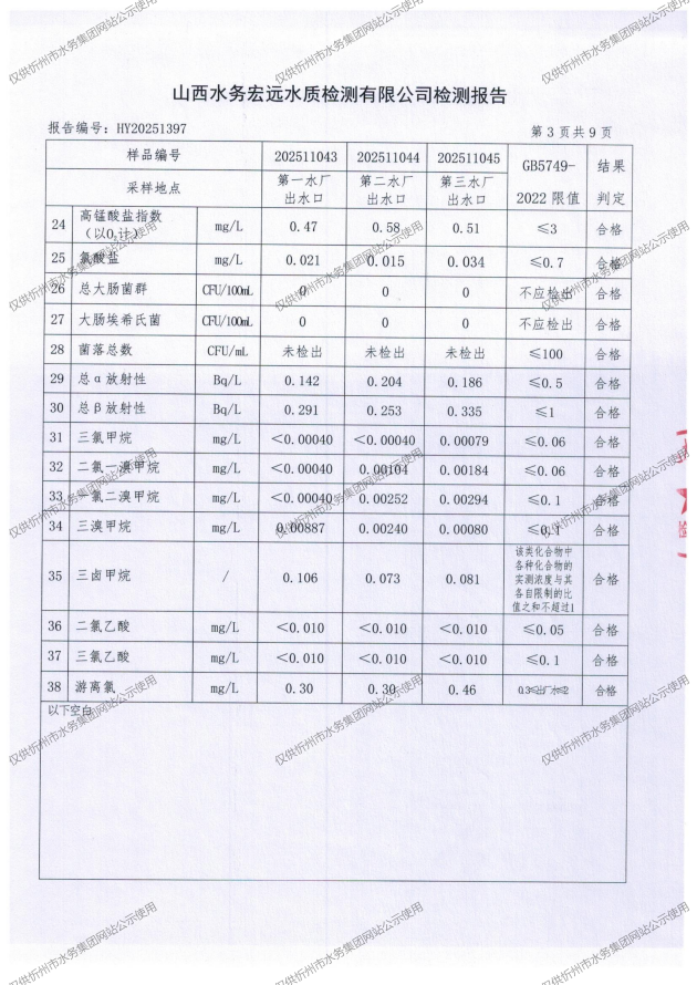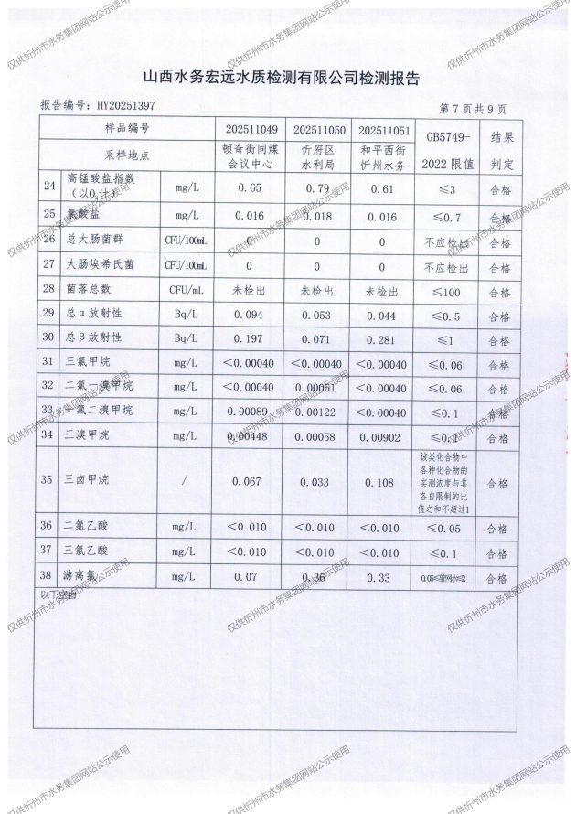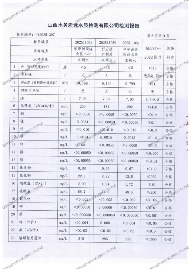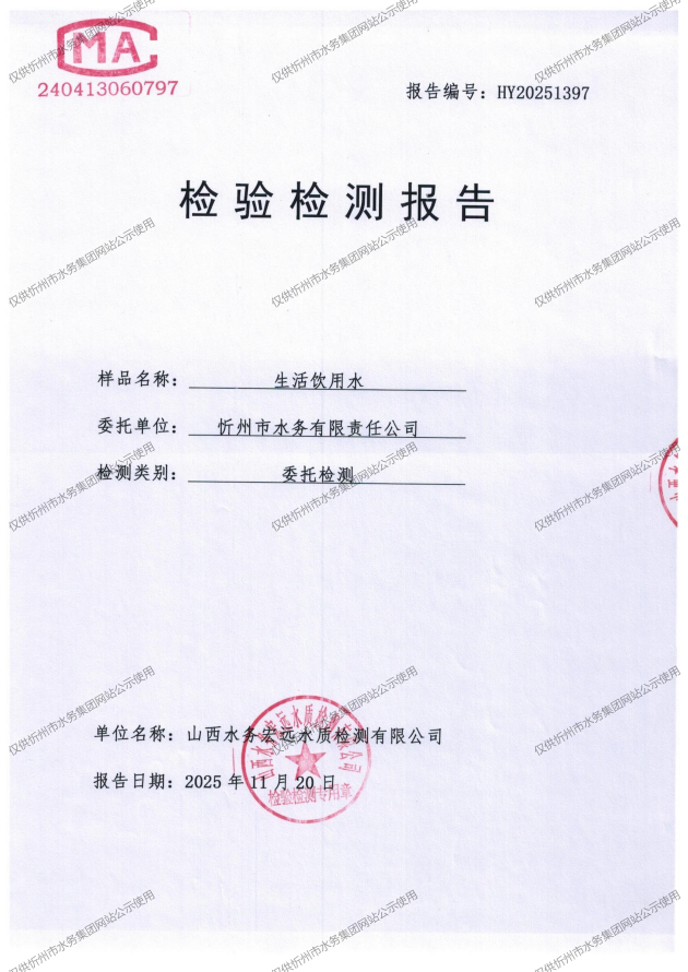 忻州城區(qū)公共供水水源水、出廠(chǎng)水、管網(wǎng)水、管網(wǎng)末梢水2025年11月份水質(zhì)信息公示