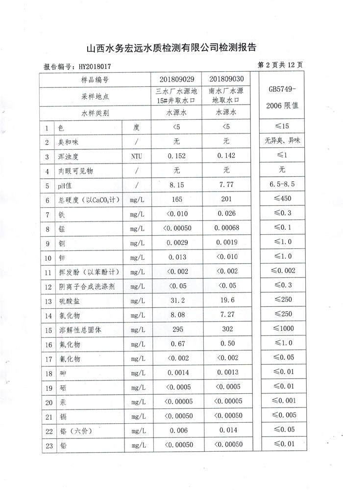 忻州城區(qū)公共供水水源水、出廠水、管網(wǎng)水、管網(wǎng)末梢水2018年9月份水質(zhì)信息公示