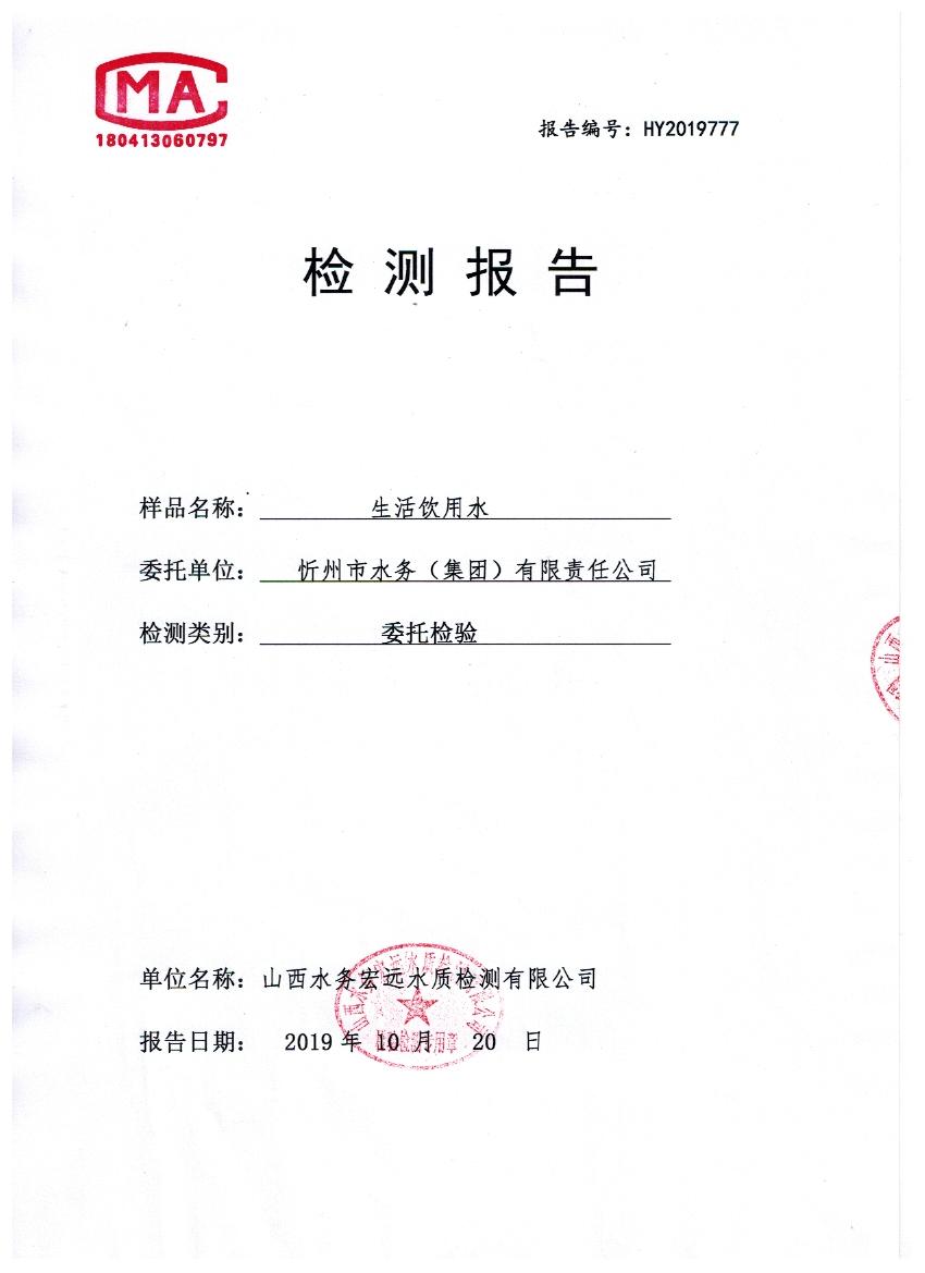 2019年忻州城區(qū)公共供水南水廠、三水廠、云中水廠出廠水106項(xiàng)水質(zhì)全分析