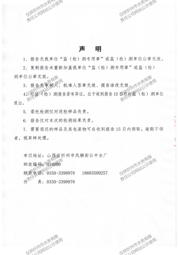 忻州城區(qū)公共供水水源水、出廠水、管網(wǎng)水、管網(wǎng)末梢水2023年5月份水質(zhì)信息公示